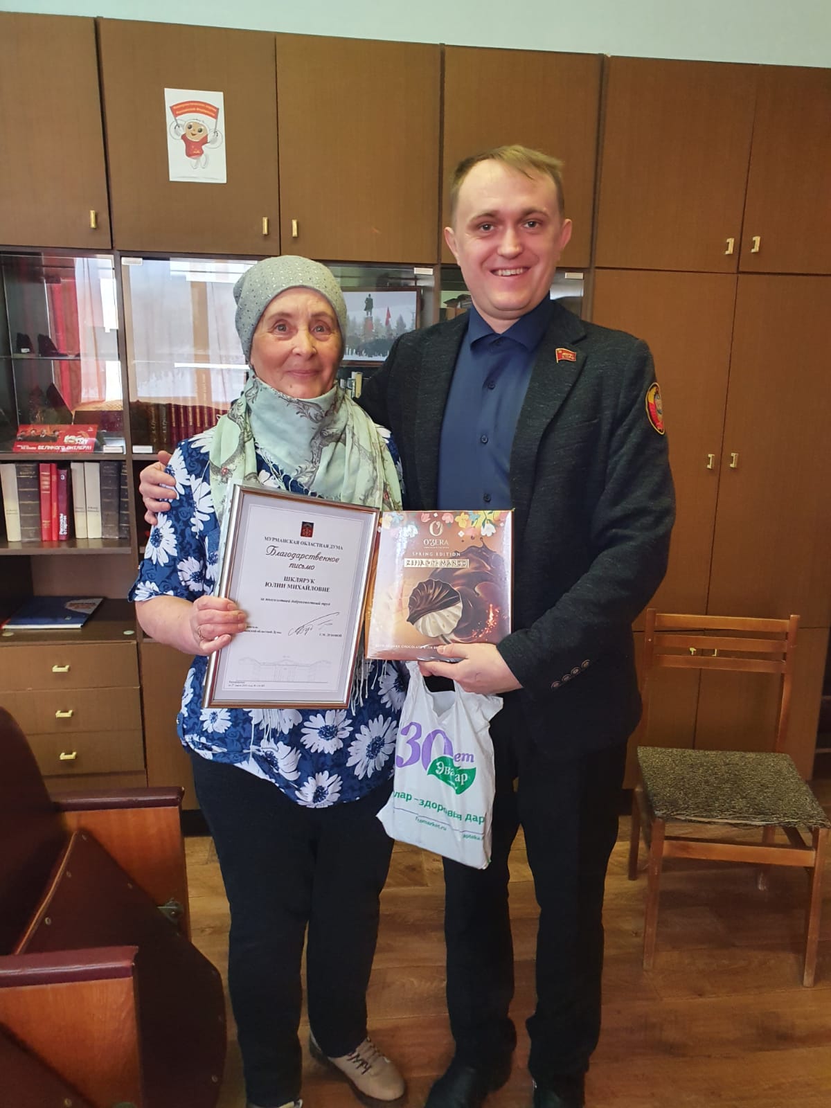 Депутат Клементьев вручил благодарственное письмо Мурманской областной Думы за многолетний добросовестный труд Шклярук Юлии Михайловне.