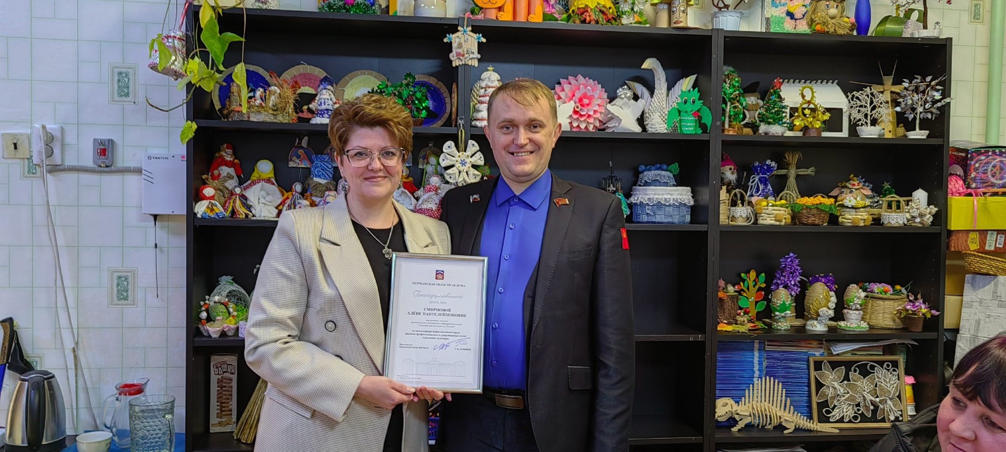 Благодарственным письмом Мурманской областной Думы за многолетний добросовестный труд, высокий профессионализм, большой вклад в развитие культуры награждена заведующая отделом по работе с сельским населением СДК н.п. Ёнский Смирнова Алена Пантелеймоновна.