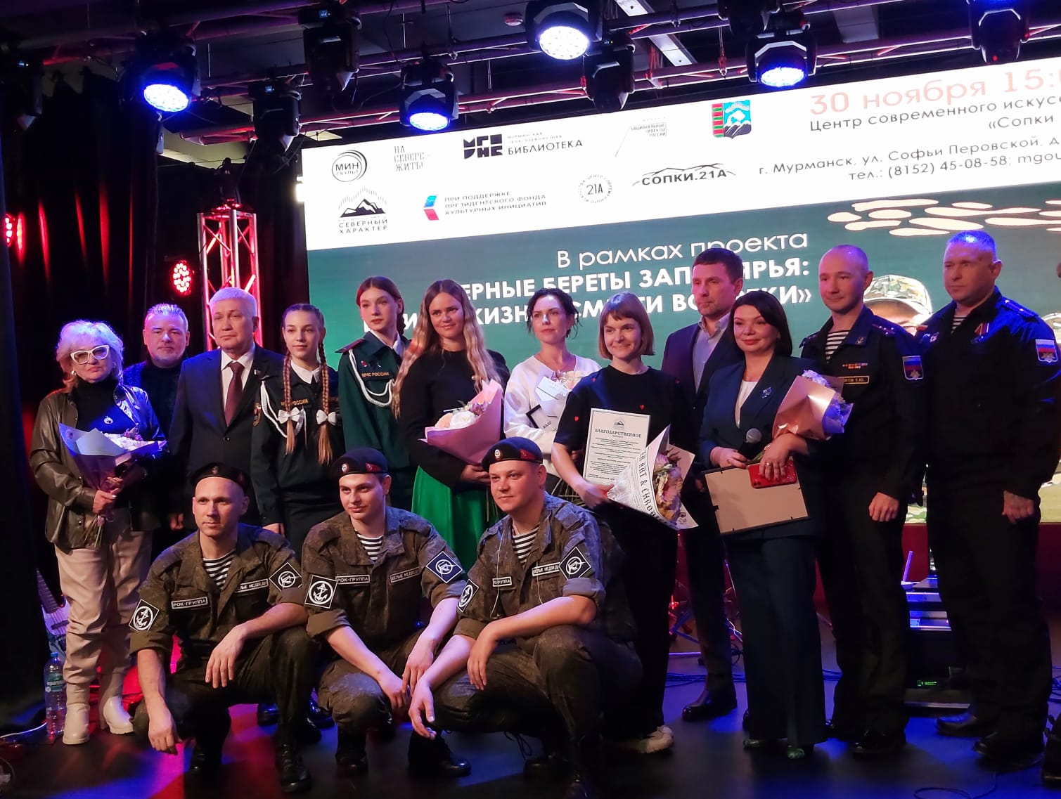 Все мероприятие сопровождалось выступлением рок-группы "Белые медведи". Во встрече также приняли участие военнослужащие, мурманские писатели, руководство благотворительного фонда и неравнодушные мурманчане.