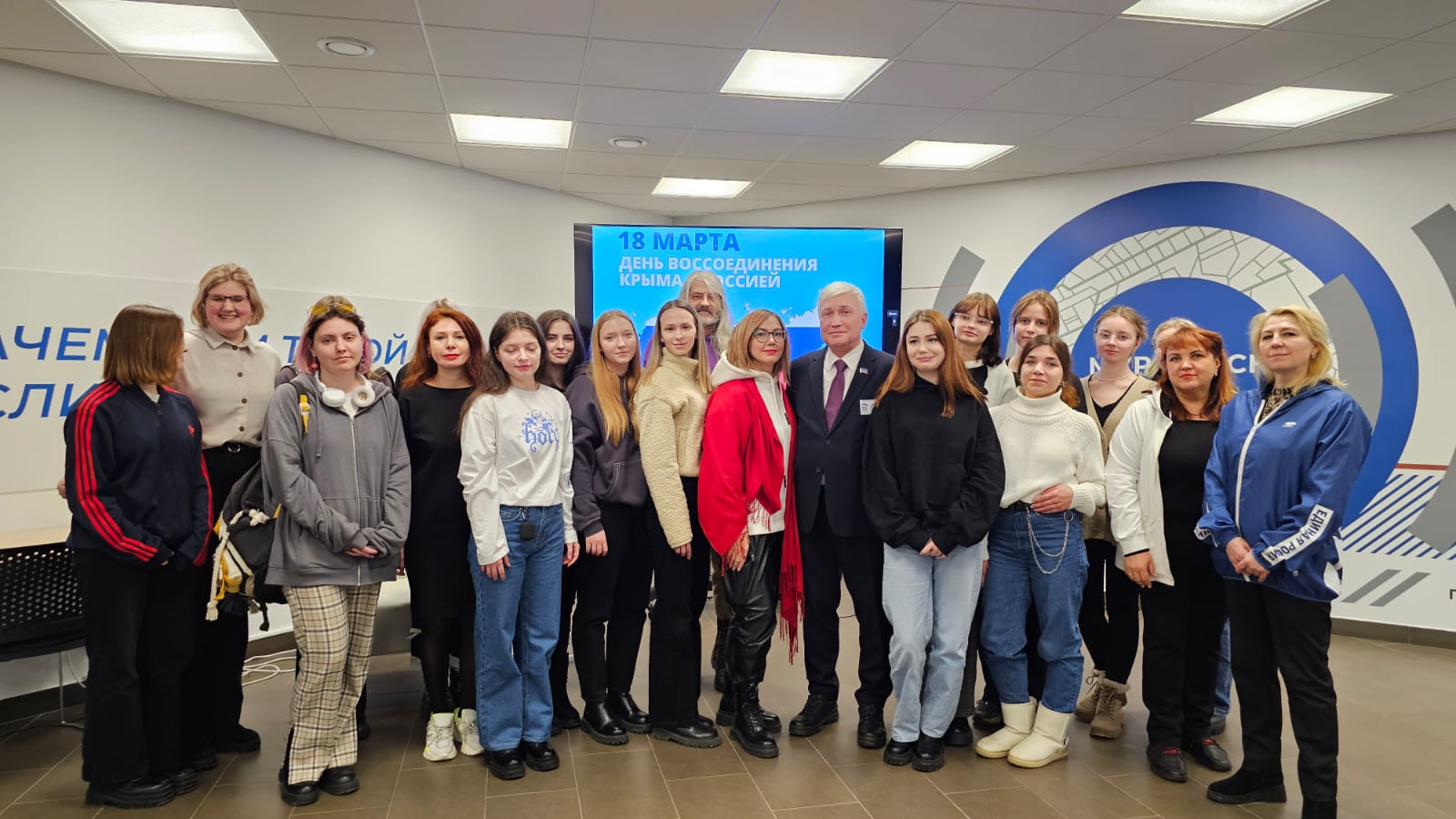 Разговор со студентами Мурманского технологического колледжа сервиса шел об исторической важности воссоединения Крыма и Севастополя с Россией.