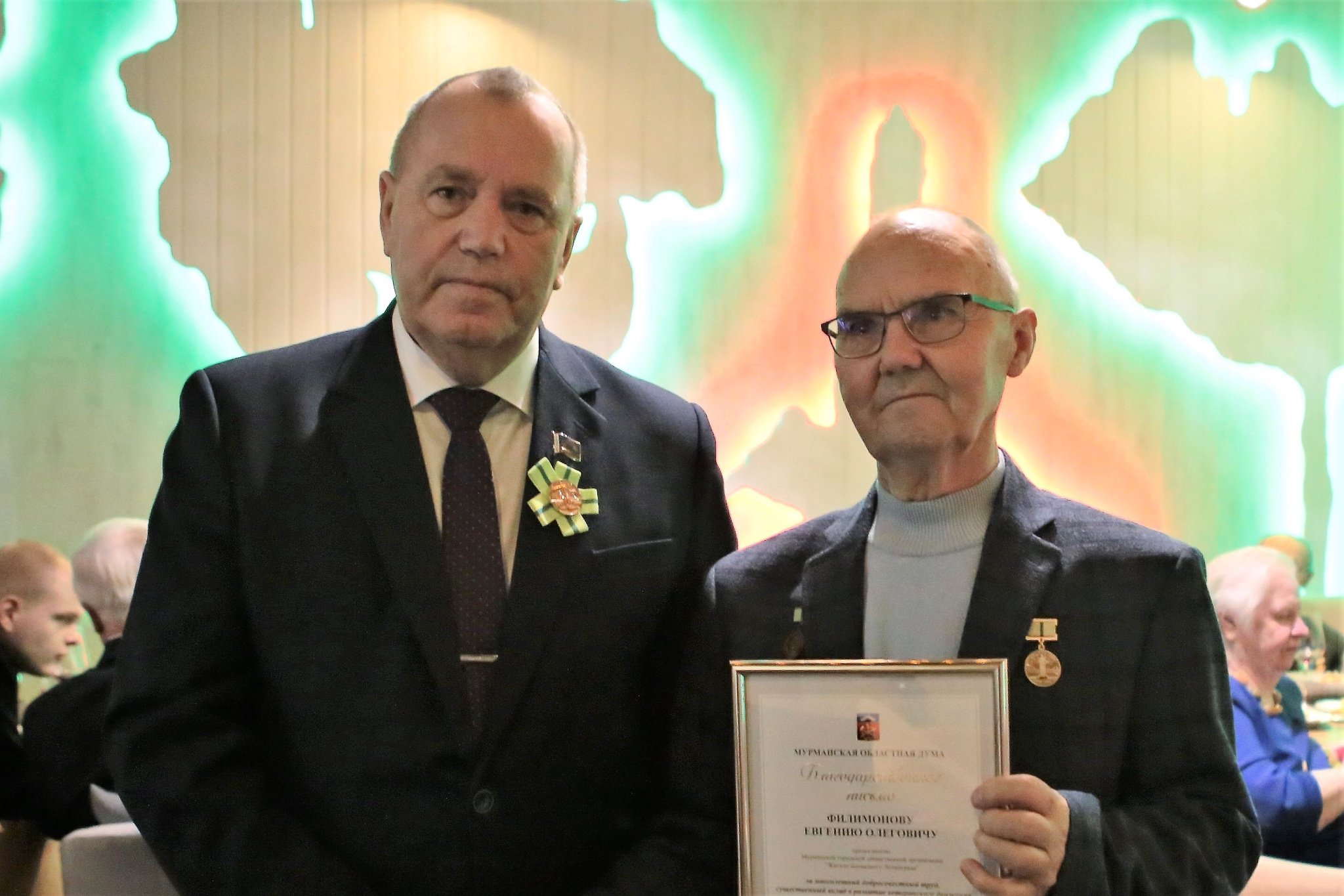 Спикер парламента поздравил защитников и жителей блокадного Ленинграда с памятной датой, пожелал ветеранам крепкого здоровья, долгих лет жизни и вручил Благодарственные письма Мурманской областной Думы председателю городской общественной организации «Жители блокадного Ленинграда» Евгению Олеговичу Филимонову и заместителю председателя Людмиле Петровне Второй.