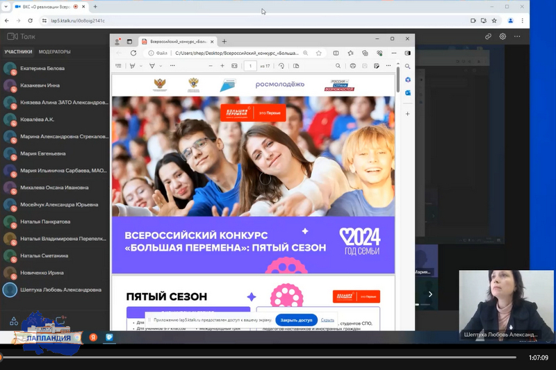 Вопросы организации Всероссийского конкурса «Большая перемена» в 2024 году обсудили с региональным координатором конкурса центром образования «Лапландия»
