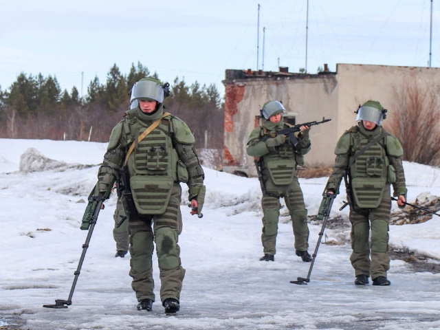 На полигоне отдельного морского инженерного полка Северного флота с военнослужащими саперами были проведены практические занятия