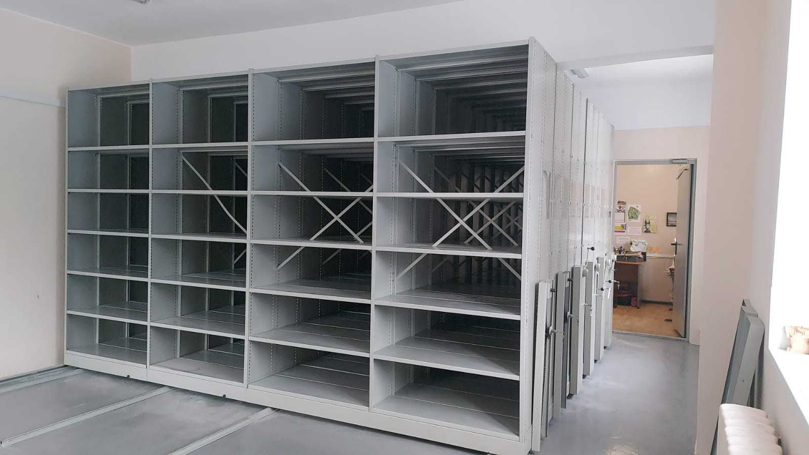 Кроме частичной реконструкции стен и дверных проемов, в хранилище укрепили пол, чтобы заменить старые стационарные стеллажи на современную мобильную систему хранения. Мобильные архивные стеллажи были переданы Научному архиву ФИЦ КНЦ РАН из Полярно-альпийского ботанического сада-института им. Н.А. Аврорина, где до настоящего времени они сохраняли гербарий ПАБСИ КНЦ РАН. А возможность такая появилась после приобретения для гербария специализированных стеллажей, обеспечивающих более комфортную среду для сохранения образцов.