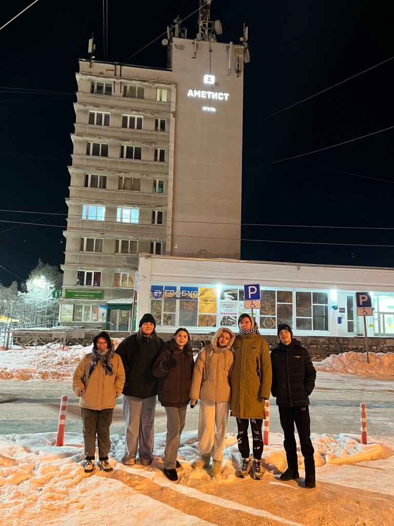 В декабре ребята были в центре города, где расположена гостиница "Аметист" - восьмиэтажное здание с пристроенным к нему рестораном и торговым домом "Аметист". Эта гостиница, пожалуй, одно из старейших предприятий на всей территории Апатитско-Кировского района. Здание было возведено в 1976 году и имеет вполне типичный советский облик, который был присущ архитектуре той эпохи: монументальность, минимализм, практичность. Надо отметить, что и сегодня – это одно из самых высоких строений в городе, с верхних этажей которого открываются шикарные виды на озеро Имандра и Хибинский массив. В свое время гостиница "Аметист" создавалось как одна из крупнейших объектов учебно-спортивной базы, которая входила в состав Республиканского комплексного учебно-спортивного центра по зимним видам спорта. Рассчитана она была на прием до 200 спортсменов одновременно. В советские времена постояльцами гостиницы были граждане СССР и иностранцы из ГДР, Чехословакии, Польши и других стран. Вот и сейчас, по прошествии многих лет, здесь с удовольствием принимают спортсменов и любителей активного отдыха со всего мира. Название гостиницы связано с добычей аметиста в Мурманской области, которую поморы здесь вели еще с XVI века. В советское время промысел обрел промышленные масштабы. Камни отсюда поставляли на отечественные заводы. Их скупали ювелирные фирмы Италии, Канады, Франции. Добыча аметистовых щёток была прекращена в 1992 году. В настоящее время месторождение «Мыс Корабль» (участок Корабельный) является минералогическим заказником областного значения. Продолжение следует… #НаСевереЖить #ГородВкоторомЯучусь