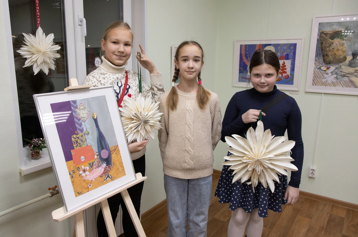 Торжественное, точнее, праздничное открытие выставки состоялось 22 декабря. На нем смогли побывать апатитские и кировские юные художники, авторы работ. Совместить зимние праздники и ботаническую тему получилось на мастер-классе по созданию объемной пуансеттии (она же – рождественская звезда).