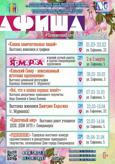 Североморский музейно-выставочный комплекс приглашает! Публикуем афишу выставок, которые пройдут в марте.