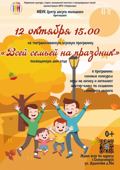 Не упустите шанс стать частью этого удивительного события и создать яркие воспоминания с вашей семьей. Ожидаем вас 12 октября в Центре досуга молодежи!