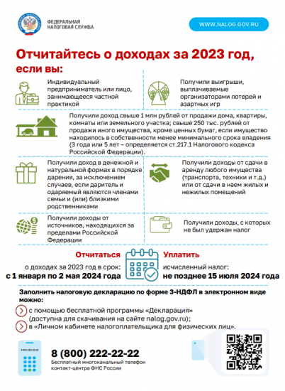 До 2 мая необходимо представить декларацию о доходах, полученных физлицом в 2023 году