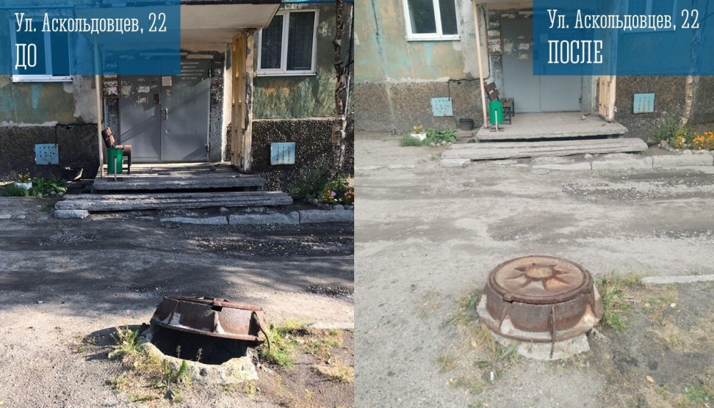 На другой встрече, которая проходила возле дома № 22 по улице Аскольдовцев, глава Ленинского округа Андрей Костин пообщался с жителями. Темой разговора стало благоустройство дворовой территории. По итогам встречи удалось оперативно восстановить канализационный люк и провести санитарную обрезку деревьев.