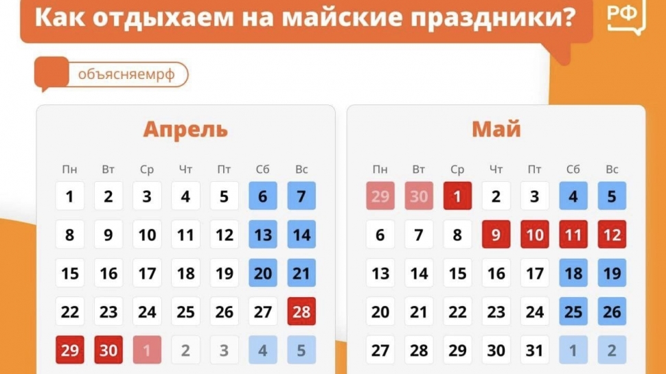 В честь Праздника Весны и Труда северяне будут отдыхать сразу 4 дня подряд. Нерабочими станут следующие дни: