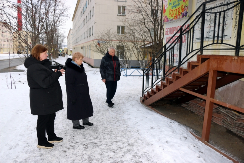 В рейд вышли председатель Совета депутатов ЗАТО Североморск Евгений Алексеев, его заместитель Евгения Гордеева и специалисты Комитета по развитию городского хозяйства. В центре внимания - содержание пандусов, урн и территорий, прилегающих к магазинам на улицах Ломоносова и Душенова.