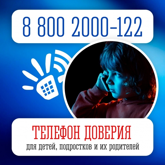 8-800-2000-122 - детский телефон доверия РФ для несовершеннолетних и их родителей. В трудных ситуациях психологическую помощь можно получить бесплатно.
