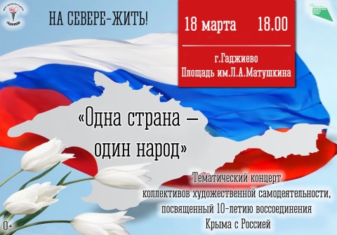 18 марта в России отмечается памятная дата – 10 лет со дня вступления Республики Крым и г. Севастополя в состав Российской Федерации на правах новых субъектов. Этот знаменательный день - дань искреннего уважения людей всех национальностей, великой истории нашей страны и продолжение её славных традиций. 18 марта во всех городах ЗАТО Александровск пройдут тематические мероприятия и концерты.