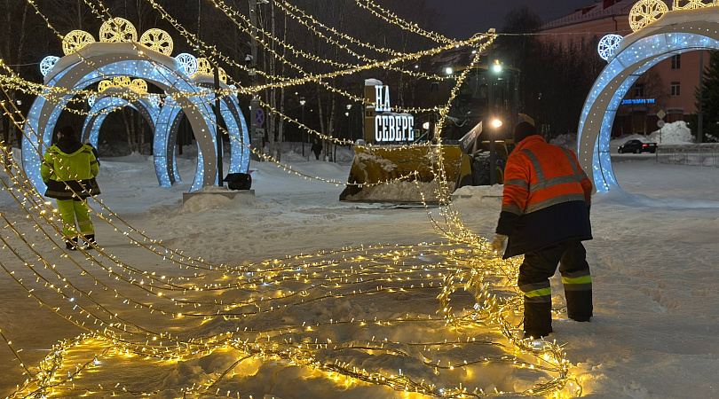 На площади Ленина приступили к демонтажу новогодней композиции