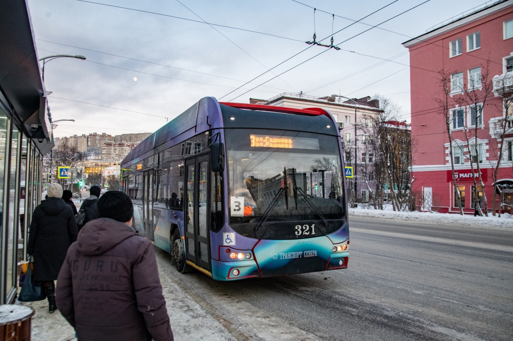 Троллейбусный маршрут № 3 от ост. Завод Севморпуть в 09:26.