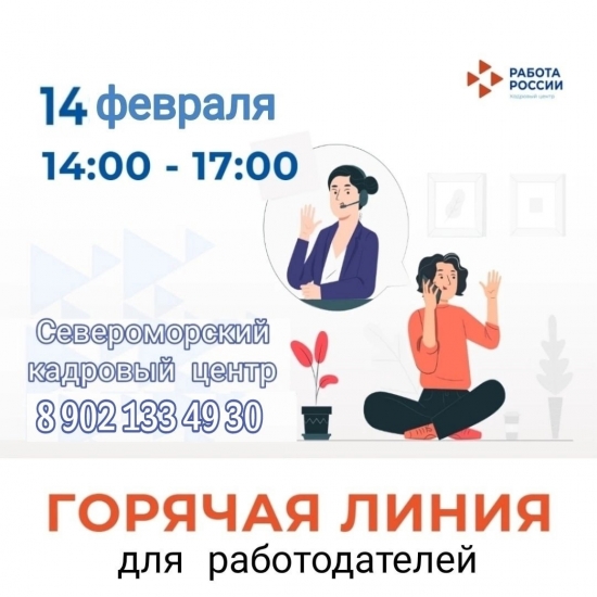 14 февраля в в Североморском кадровом центре с 14.00 до 17.00 будет работать телефон «горячей линии» по вопросам содействия предпринимательской деятельности.