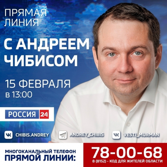 Прямая линия пройдет в региональном блоке телеканала «Россия 24». Также трансляция будет доступна на странице Андрея Чибиса ВКонтакте и в официальном Телеграм-канале.