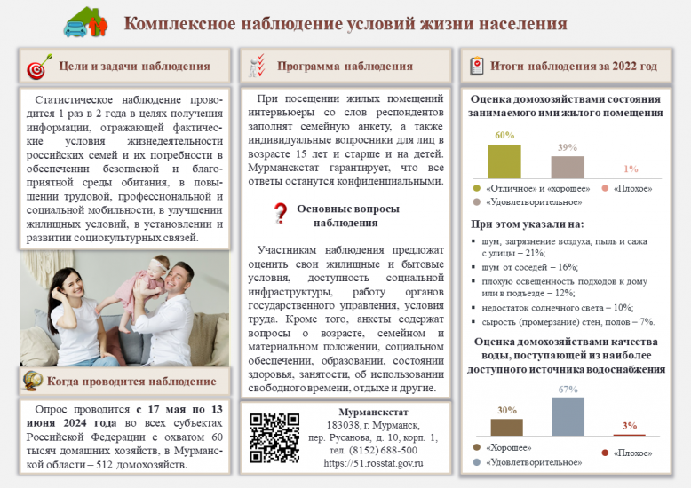Более подробная информация об итогах комплексного наблюдения условий жизни населения размещена на сайте Мурманскстата .