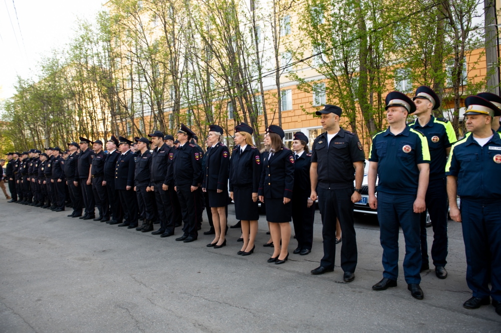 В честь этого события на улице Воровского выстроились личные составы комплексных сил и средств подразделений УМВД России по городу Мурманску и УМВД России по Мурманской области.