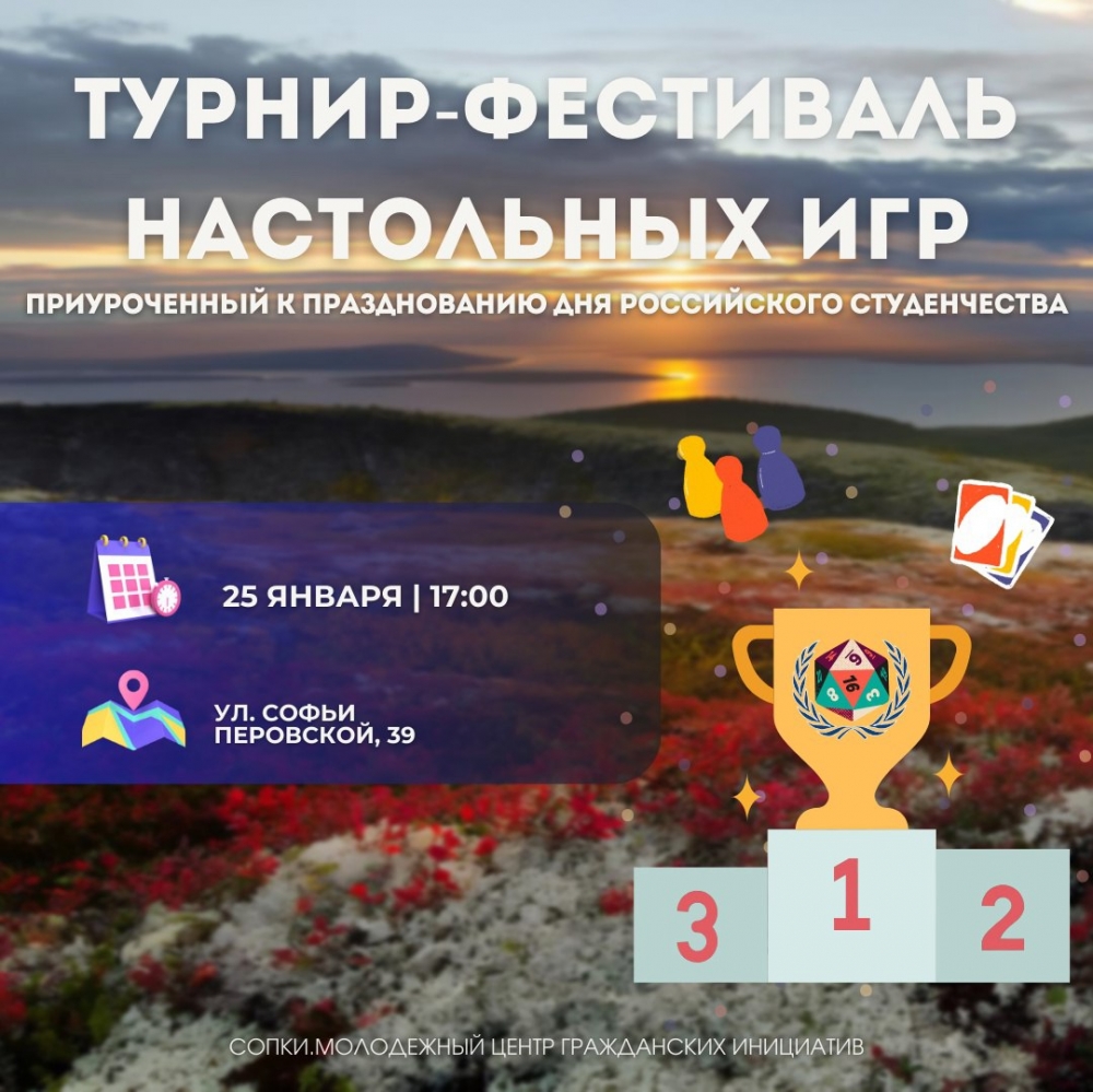 25 января в 17:00 в СОПКИ. Молодежном центре гражданских инициатив (ул. Софьи Перовской, 39) состоится турнир-фестиваль настольных игр.