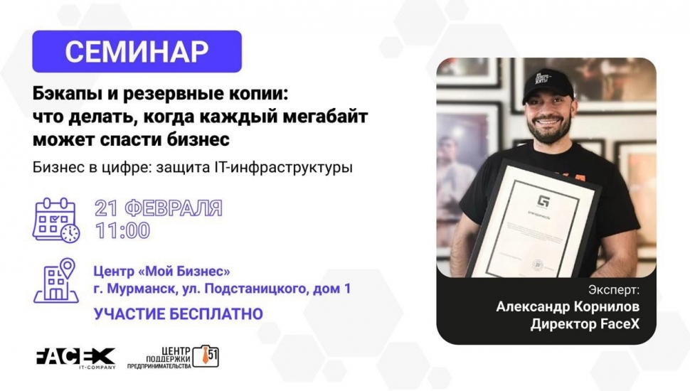21 февраля в 11.00 в Центре «Мой бизнес» состоится бесплатный семинар «Бэкапы и резервные копии: что делать, когда каждый мегабайт может спасти бизнес».