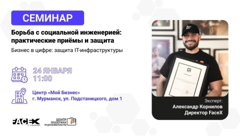 24 января в 11:00 в Центре «Мой бизнес» состоится бесплатный семинар «Борьба с социальной инженерией: практические приемы и защита».