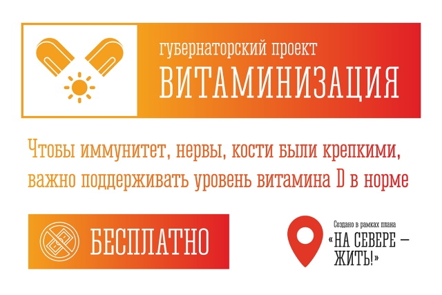 «Для укрепления здоровья северян в рамках стратегического плана «На Севере – жить» мы запускаем проект «Витаминизация». Его суть – дать жителям Мурманской области возможность узнать свой уровень витамина D, и, в случае его дефицита, бесплатно получить препарат, чтобы этот уровень повысить. Низкий уровень содержания витамина D в организме сопряжён с риском развития инфекционных, сердечно-сосудистых, хронических заболеваний кишечника, аллергических, аутоиммунных заболеваний, среди которых ОРВИ, туберкулез, бронхиальная астма, сахарный диабет. Также нехватка витамина D может вызывать боли в мышцах, слабость, повышенную утомляемость, хроническую усталость», – отметил заместитель губернатора – министр здравоохранения Мурманской области Дмитрий Панычев.