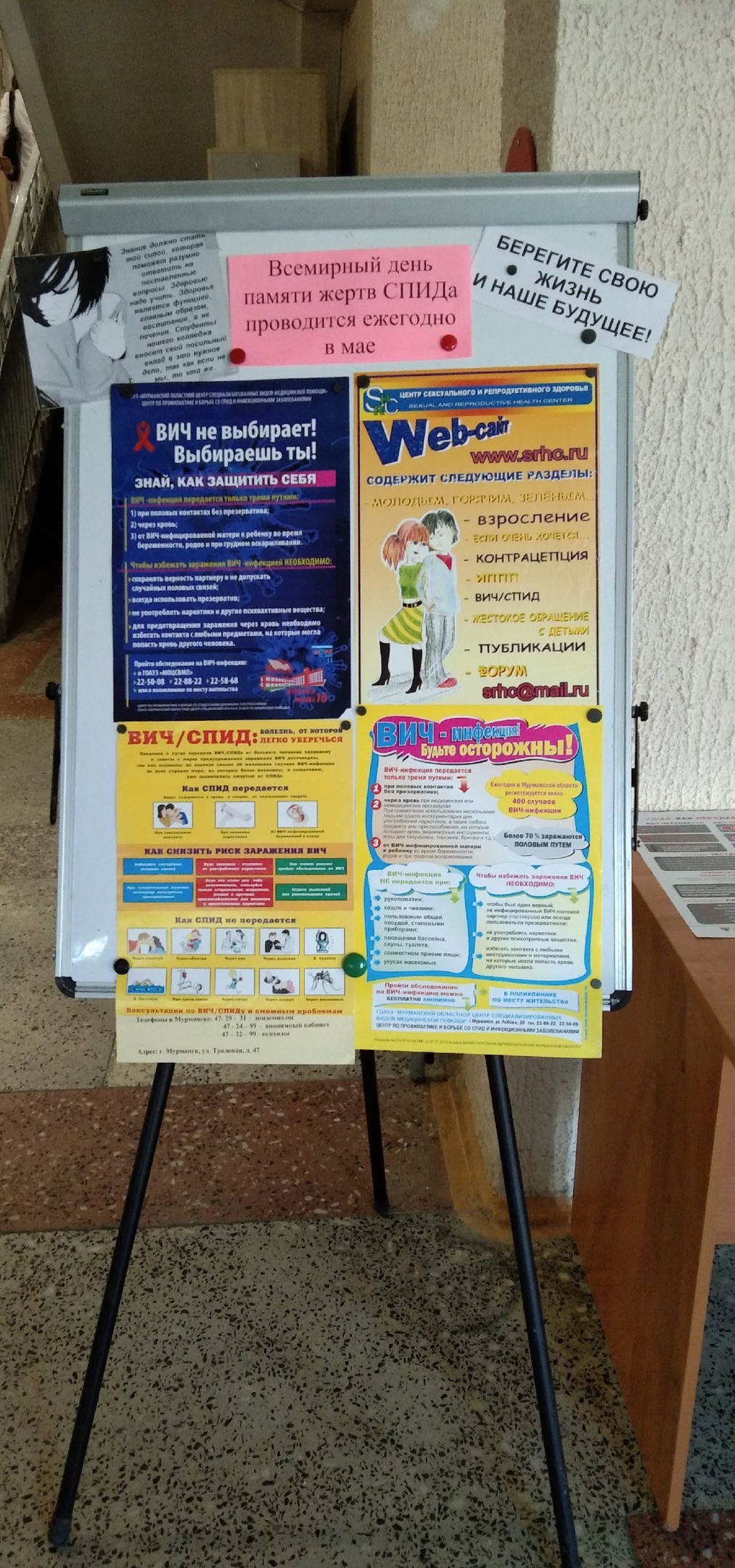 В рамках Всероссийской акции «СТОП ВИЧ/СПИД», приуроченной ко Всемирному дню памяти умерших от СПИДа, в колледже прошло тестирование студентов на определение уровня компетенции в области профилактики распространения ВИЧ-инфекции, в котором приняли участие около 80 студентов. Планируемый результат социальной акции – влияние на поведение населения в аспекте повышения осознанности и ответственности в выборе варианта поведения с тем, чтобы уменьшить количество вновь-заразившихся или прекратить появление ВИЧ-инфицированных людей в нашей стране. Также в читальном зале библиотеки и фойе колледжа были оформлены тематические стенды: ответственность за пропаганду наркотических и психотропных средств, последствия их незаконного потребления, пути передачи и методы защиты от ВИЧ-инфекций.